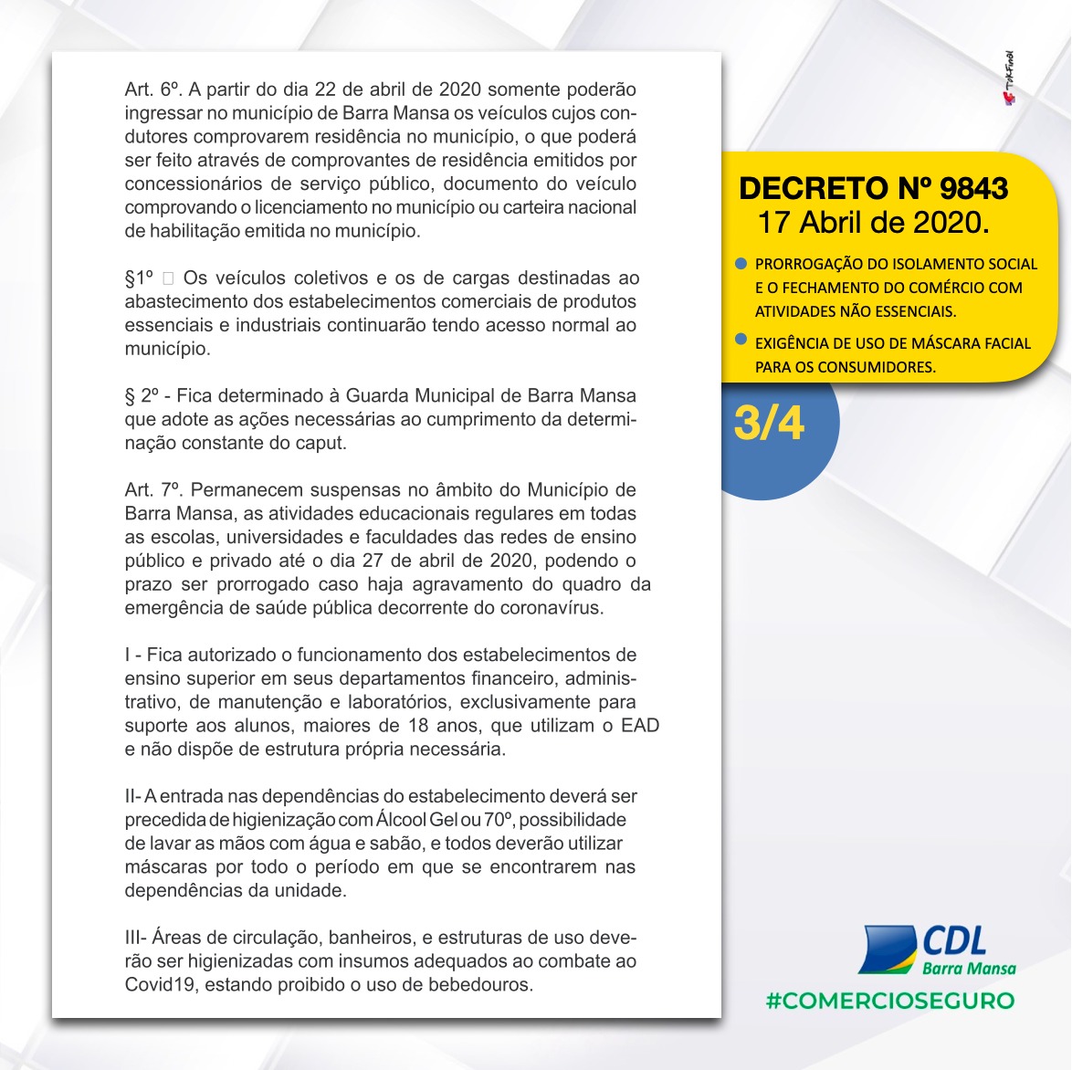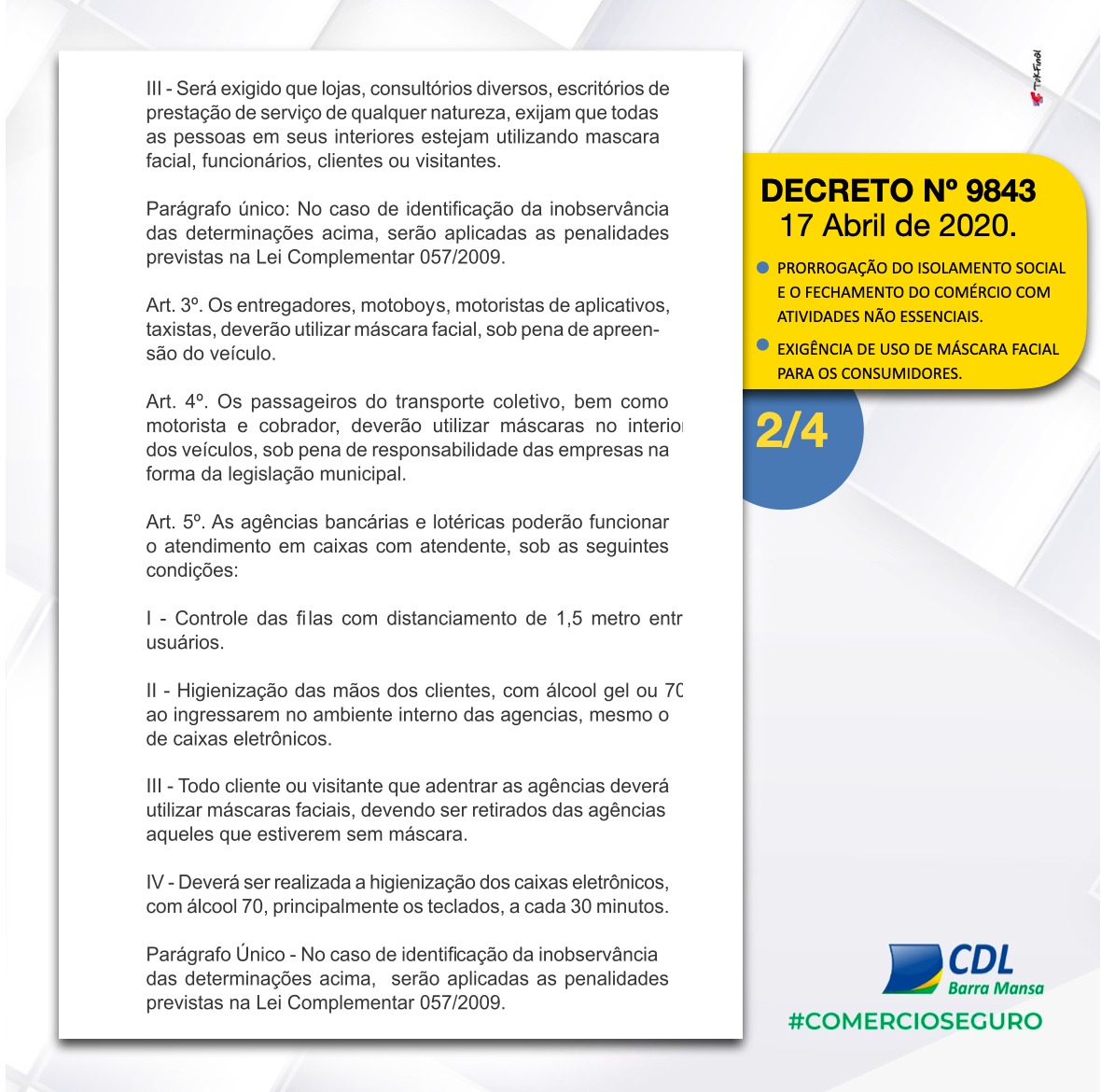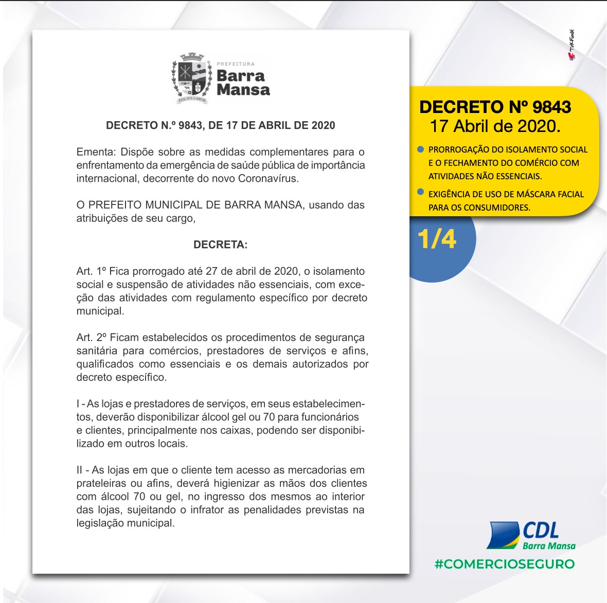 Conforme novo decreto municipal de Barra Mansa, número 9843, os funcionários/proprietários de estabelecimentos comerciais e servidores que prestem atendimento ao público devem usar máscaras. A determinação foi decretada em 17 de abril e já está em vigor.