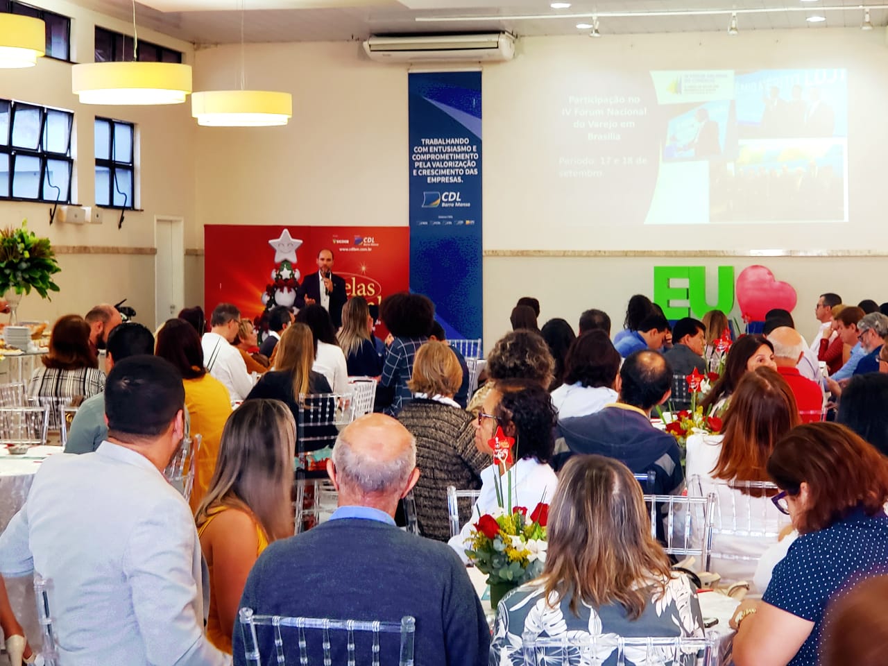 Ainda durante o café da manhã, como de praxe, Xisto destacou as principais e mais recentes ações da entidade, entre elas o Cadastro Positivo. O presidente da CDL BM lembrou que o SPC Brasil foi credenciado pelo Banco Central para operar o banco de dados de Cadastro Positivo. Outra ação destacada foi a Caravana à Feira do Empreendedor, onde a CDL, em parceria com o SEBRAE, levou empresários a São Paulo, no último dia 07, para conhecer as mais variadas opções de investimentos em novos negócios. A participação no IV Fórum Nacional do Varejo, nos dias 17 e 18 de setembro, em Brasília, também foi lembrada e Xisto pontuou que, na ocasião, o Brasil esteve unido em prol de uma grande causa: mostrar a força que o varejo integrado tem. “As palestras do ministro da Economia, Paulo Guedes, e do ministro da Justiça, Sérgio Moro, foram pontos altos o evento”, lembrou. Xisto ainda falou aos empresários a respeito da mobilização das entidades comerciais da cidade em busca de soluções para o grande número de ambulantes no centro da cidade.